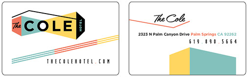 Born out of a vintage '50s Palm Springs vibe, a twist of '80s spring break, some youthful irreverence, and a dash of LA attitude, The Cole provides a needed getaway for a wide variety of clientele. From our take on the brand vision, personality and color palettes, to the details of key cards and signage, we've helped to develop a hotel vibe that is chill with a bit of attitude.